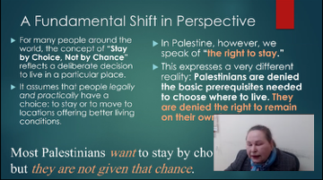 Olga Bertran, from the B-HUB at Birzeit University in Palestine, delivered a captivating speech, as her angle touched base with the most fundamental human right, the right to “life”. The way she put it, “most Palestinians want to stay by choice, but they are not given the chance”. This perspective clearly differentiates the deliberate decision most people make to live in a particular place, from that taken away from people in times of war! She stressed that “Palestinians are currently facing a different reality, whereby they are being denied the basic prerequisite to choose where to live, they are denied the right to live in their own land”. Several challenges were laid out, such as no border control, no fiscal policy, rising poverty and transaction costs. Furthermore, labor and brain drain, growing inaccessibility in education, and families displaced were also mentioned.